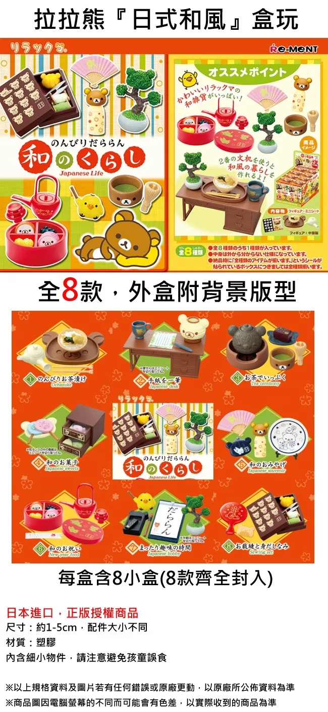 【日本進口正版】全套8款 RE-MENT 拉拉熊 日式和風 盒玩-模型-公仔-擺飾 懶懶熊 Rilakkuma 療育文具商品分享